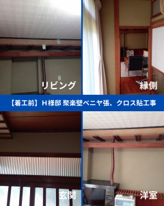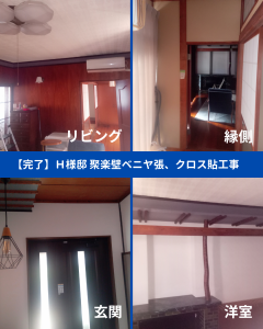 柳川市 H様邸【聚楽壁ベニヤ張、クロス貼工事】